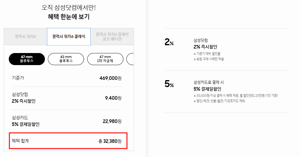 | 갤럭시 워치6 클래식 | 43MM | 429,000원 |