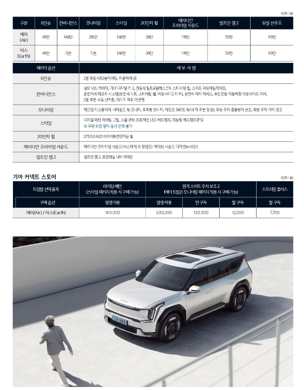 기아 EV9의 가격은 워낙 옵션별 트림별 인승별 로 달라서 제가 하나씩 텍스트로 설명드리는 것보다는 가격표를 첨부하는 게 나을 것 같아서 이미지로 하단에 첨부하겠습니다.