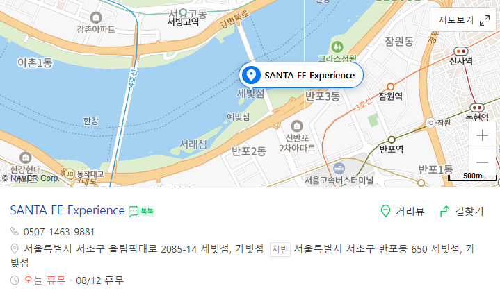 현대자동차는 8월 17일부터 8월 25일까지 한강 세빛섬 일대에서 현대 싼타페 신형을 볼 수 있는 싼타페 익스피리언스를 운영한다고 합니다. 현재 현대 싼타페 익스피리언스는 네이버예약을 통해 예약이 가능하며 예약을 해야 이용이 가능합니다. 이 포스팅을 통해 싼타페 익스피리언스 예약 방법과 매진 후 예약 방법 행사장소 및 운영시간에 대해 알아보겠습니다.