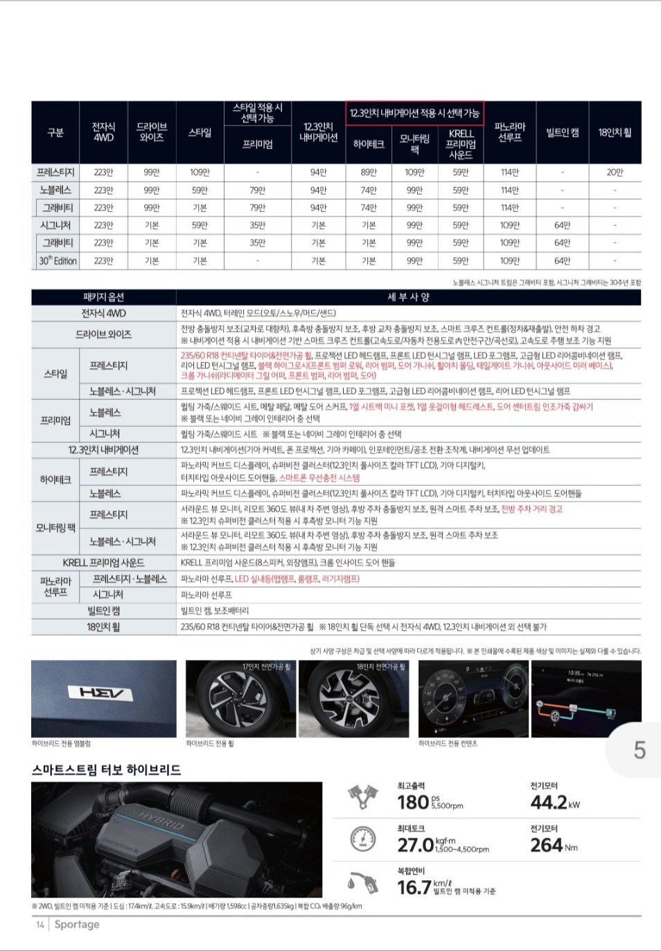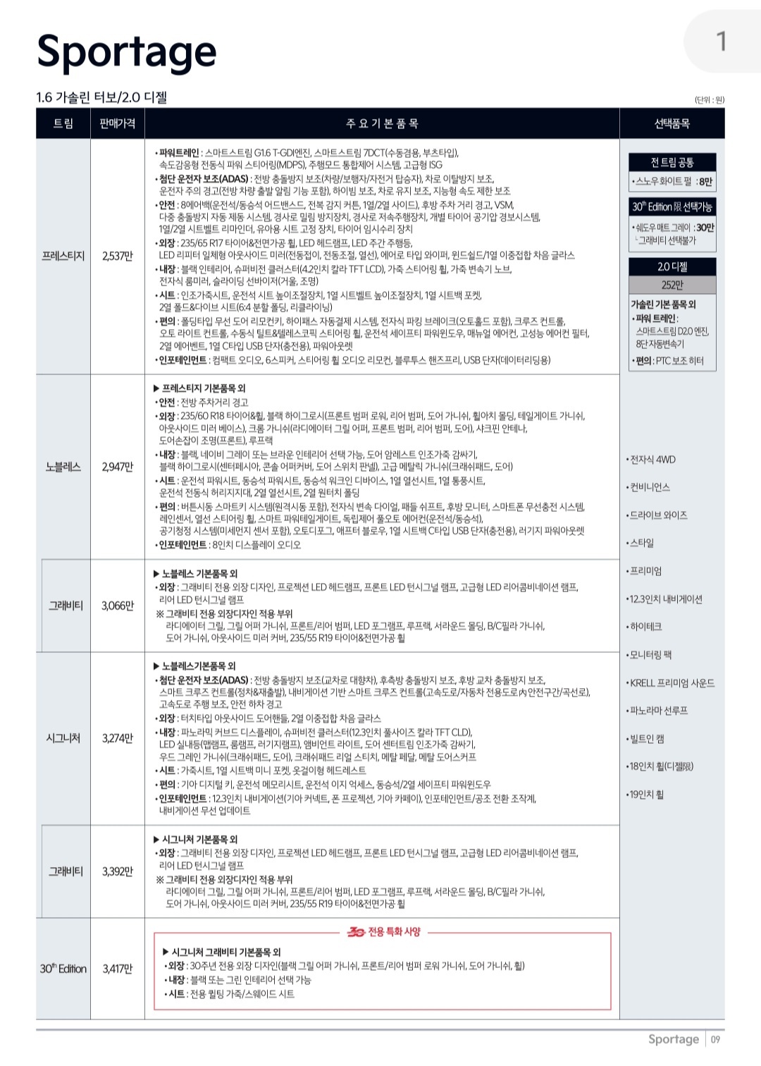 스포티지NQ5 옵션 및 색상 새로운 트림
